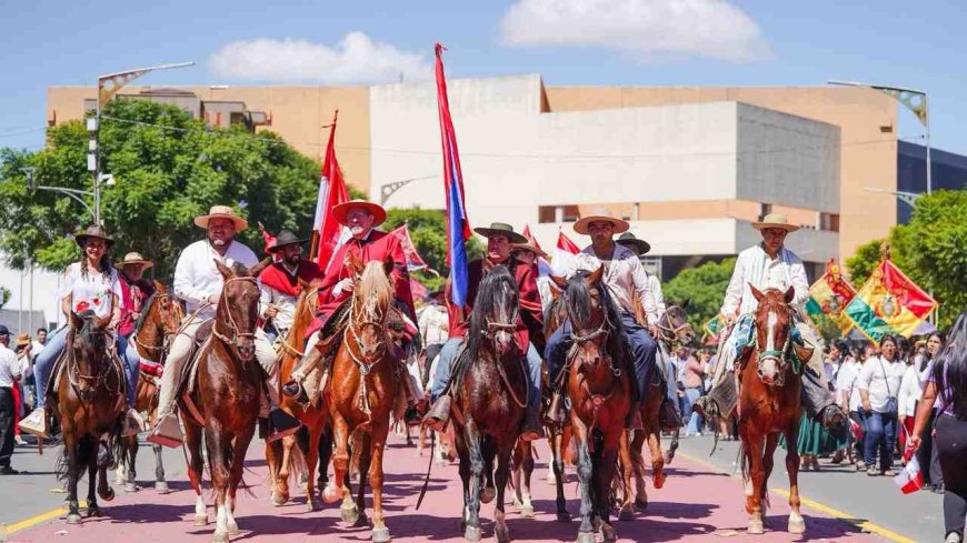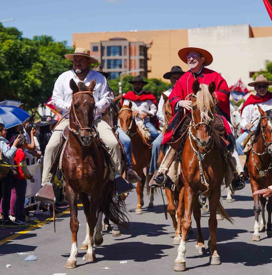 Entre las delegaciones presentes se destacó la participación de la Asociación Hípica de Uriondo, que recorrió la avenida principal como parte de las expresiones organizadas de la sociedad civil. En este contexto, también formó parte del desfile el exgobernador Adrián Oliva, integrando dicha agrupación.
