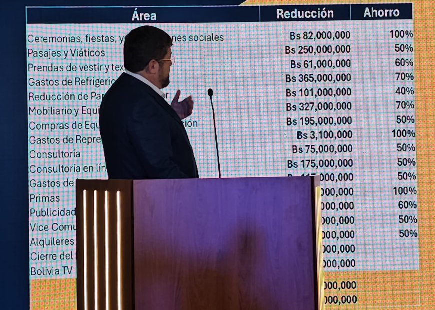 Asimismo, se eliminarán en un 100% los gastos en ceremonias, fiestas y celebraciones políticas financiadas por el Estado, con excepción de actos militares y la celebración del 6 de agosto. Esta medida aportaría un ahorro adicional de 82 millones de bolivianos anuales.