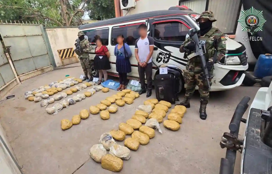 La FELCN interceptó un vehículo en la carretera Tarija–Bermejo y halló 101 paquetes de marihuana; el conductor y dos acompañantes fueron aprehendidos.