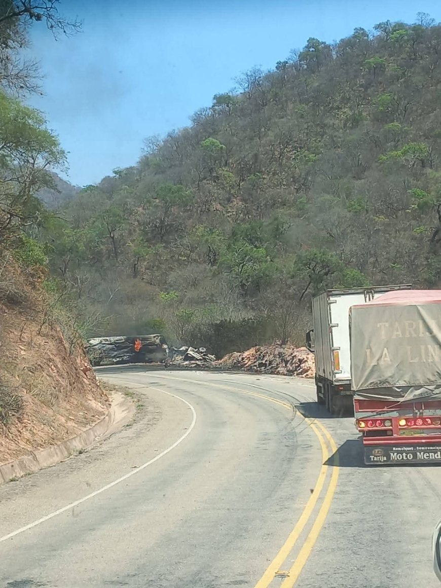 El hecho se registró esta tarde en la carretera Entre Ríos – Palos Blancos, cuando un camión cisterna perdió el control, se volcó y terminó envuelto en llamas antes de llegar a la localidad.