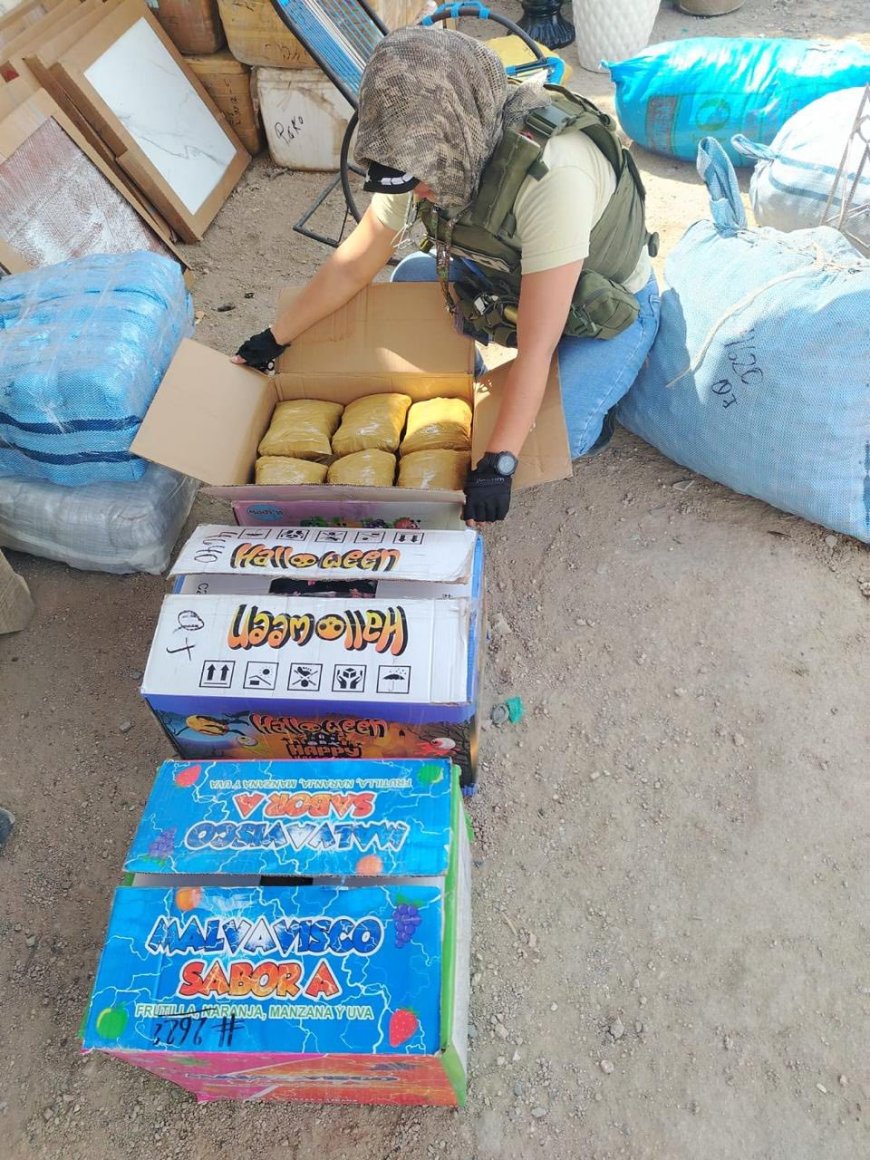 De acuerdo con el informe oficial, durante la inspección y revisión de bodegas se identificaron las encomiendas sospechosas. Posteriormente, se aplicó la prueba de campo correspondiente, que dio resultado positivo para marihuana.