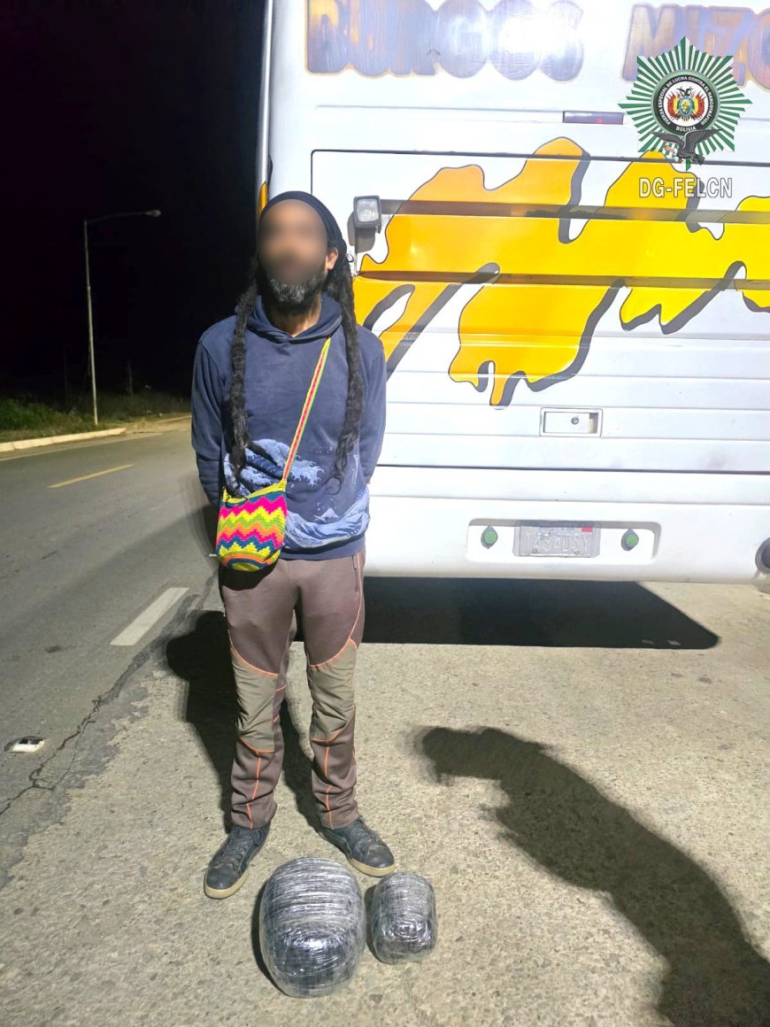 Durante un operativo de control realizado por la Fuerza Especial de Lucha Contra el Narcotráfico (FELCN) en la carretera Santa Cruz – Cochabamba, efectivos policiales interceptaron una flota de transporte público interdepartamental, donde se halló una mochila con sustancias controladas.